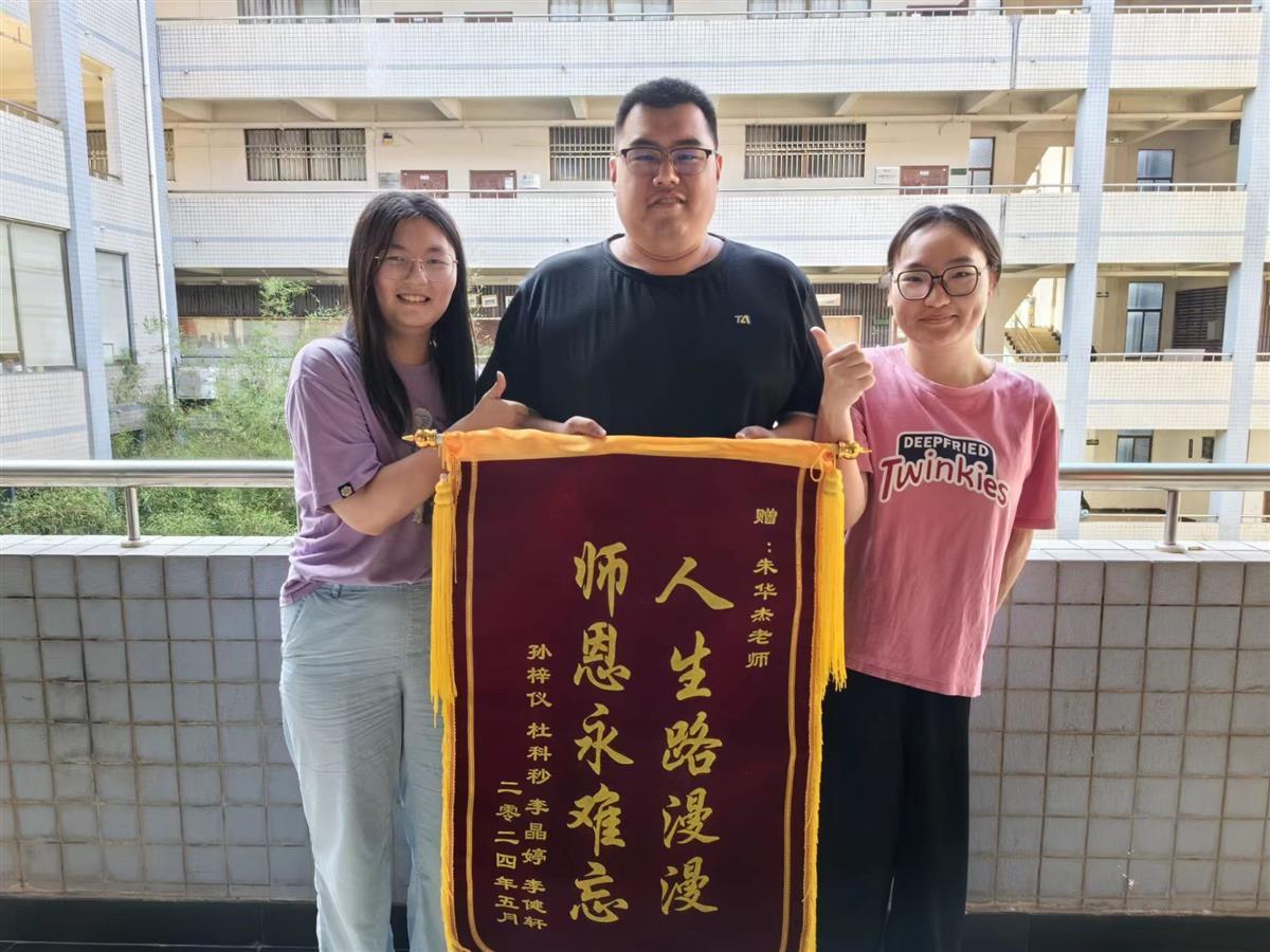 “人生漫漫,师恩难忘”“良师益友,现代师表”“银河系最好辅导员”……毕业大合影,朱华杰收到了同学们送来的一面面锦旗,毕业生严智美说,作为学生的自己,有很多获得荣誉和嘉奖的机会,朱老师真情陪伴了大家四年,她和室友们希望毕业时也为朱老师颁个奖,表达心意。“只是没有想到,不谋而合的人这么多!”她说。