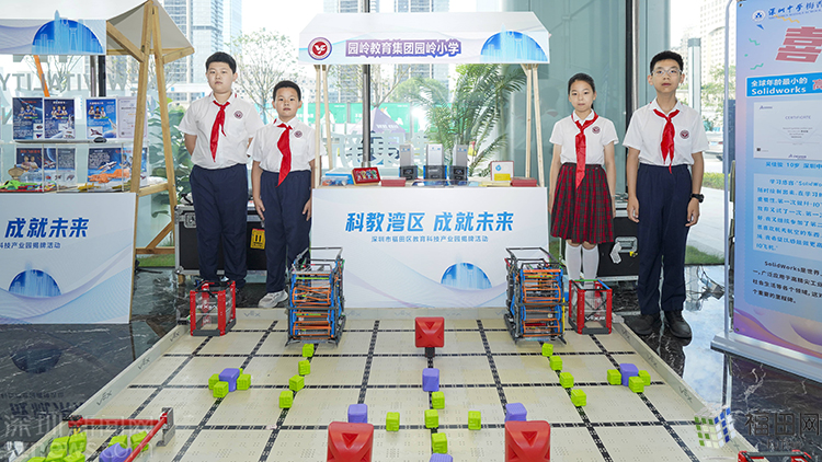 为直观展示AI赋能教育硕果,深科技城一楼大厅还举行了教育科技展。在华富街道、南园街道的支持下,10个科技创新教育特色学校代表展出了教育科技类成果,包括AI科创成果、智能木工、云墨智能毛笔书法助手、生态科普作品、Make X机器人、3D打印作品、与蔚来汽车合作的跨学科融合课程成果等学生在科创项目式学习中的作品,直观呈现出近年来福田科技教育的累累硕果。