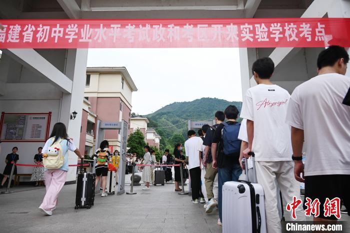 图为6月18日,参加中考的考生抵达政和县开来实验学校考点。 黄杰敏 摄