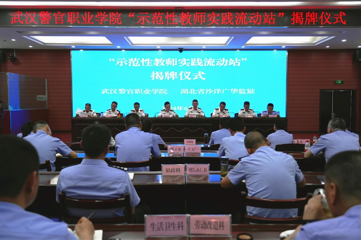 为进一步提升教师实践能力,加强“双师型”师资队伍建设,6月15日上午,在湖北省广华监狱,武汉警官职业学院举行“示范性教师行业实践流动站”揭牌仪式。武汉警官职业学院副校长、学校优秀毕业生代表、沙洋广华监狱领导代表等相关人员参加活动。