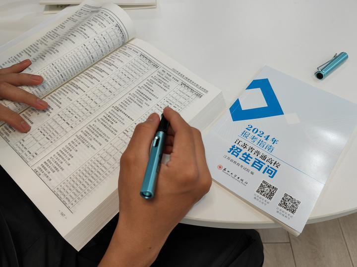 6月17日,南京市一名高三考生阅读江苏省教育考试院编制的2024年报考指南。(新华每日电讯记者陈席元摄)