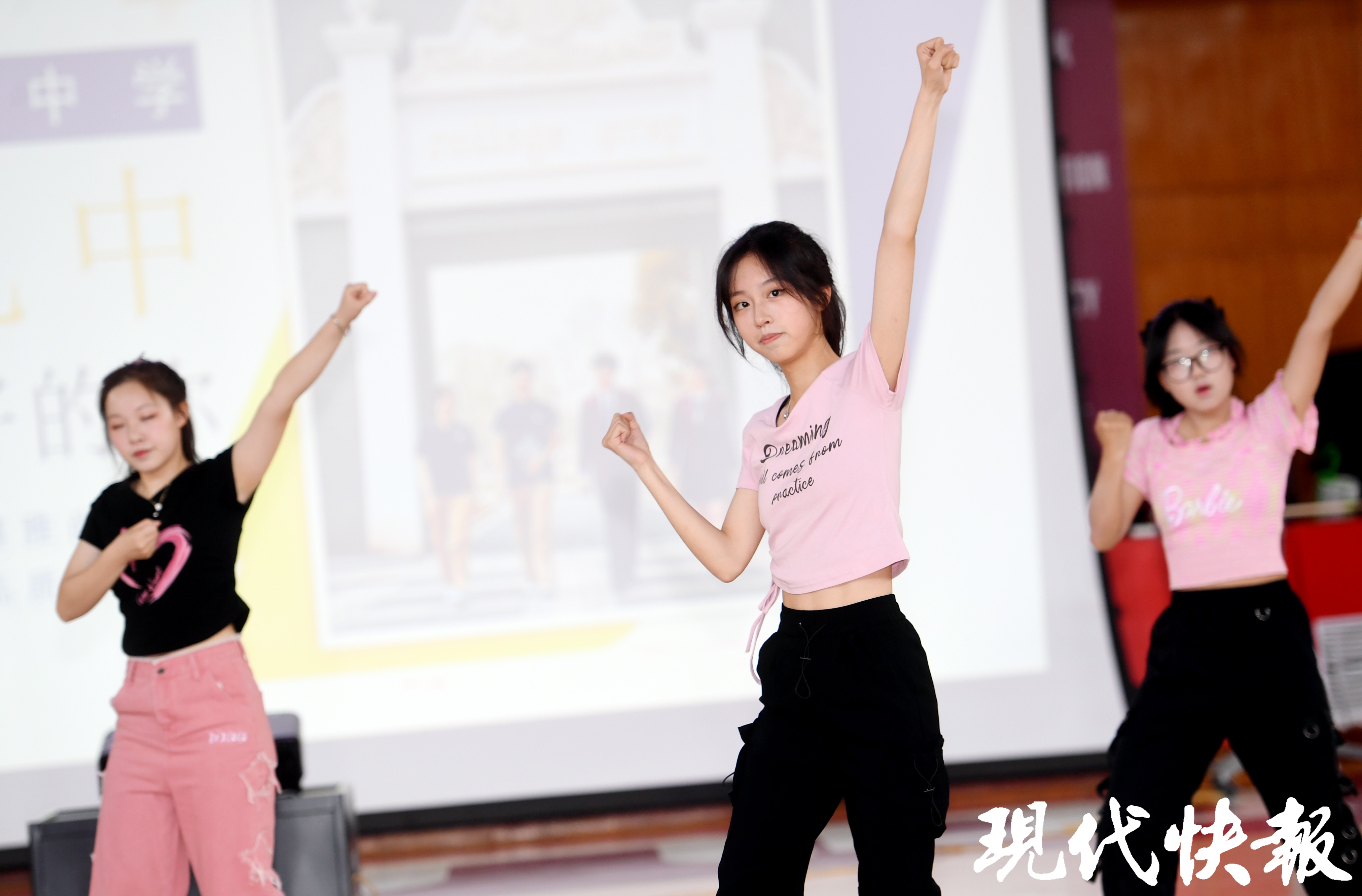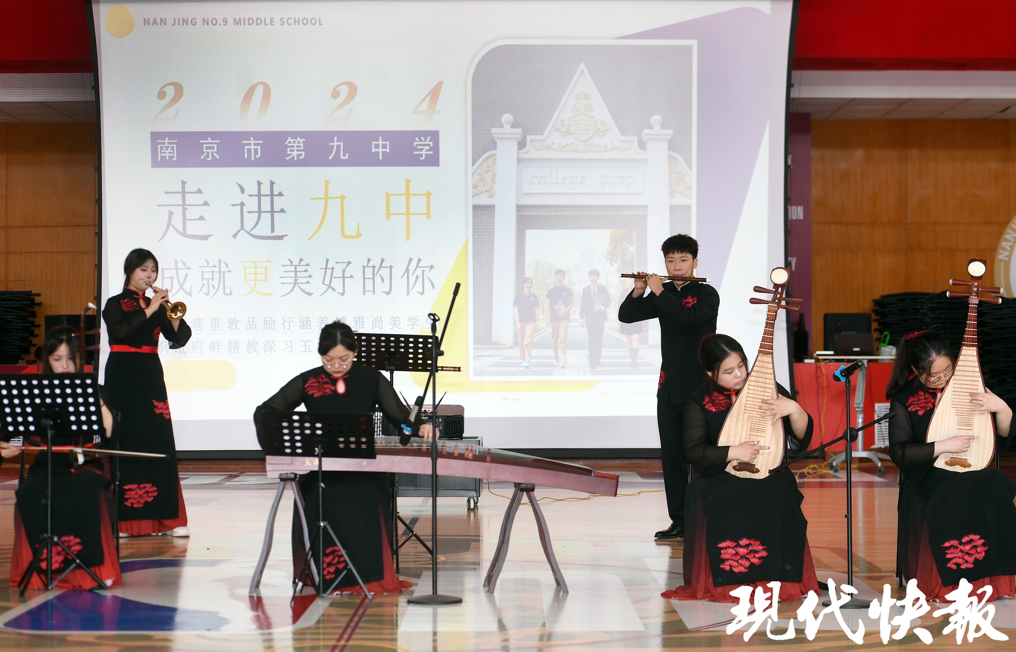 在尚美课堂的思维风暴之后,一场盛大的社团巡礼表演即将在体育中心上演。在此之前,南京市第九中学副校长吴昊对同学们的到来表示了热烈的欢迎,吴昊副校长详细介绍了九中的办学理念、师资力量和校园活动等方面的学校情况,让同学们对九中有了更加全面的了解。随后,九中学长学姐们带来的各类社团节目闪亮登场!九中民乐团与合唱团的《象王行》《New Boy》《逐空》让同学们徜徉在音乐的世界中流连忘返;Free-Storm舞团青春四射的《WE ROCK》,“若水”截拳道社力量十足的《龙的传人》让学弟学妹们直呼“泰酷辣”;曈昽科技社炫酷的《铁甲战队》机器人大秀让现场的科技发烧友们摩拳擦掌、跃跃欲试;而九中男子篮球队的《青春“篮”不住》互动游戏则让学弟学妹们彻底融入九中博雅尚美的文化氛围中、成为其中的一员。社团巡礼现场充满了快活的空气,精彩的节目赢得了同学们的阵阵掌声。