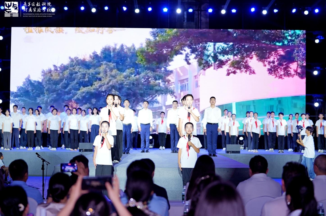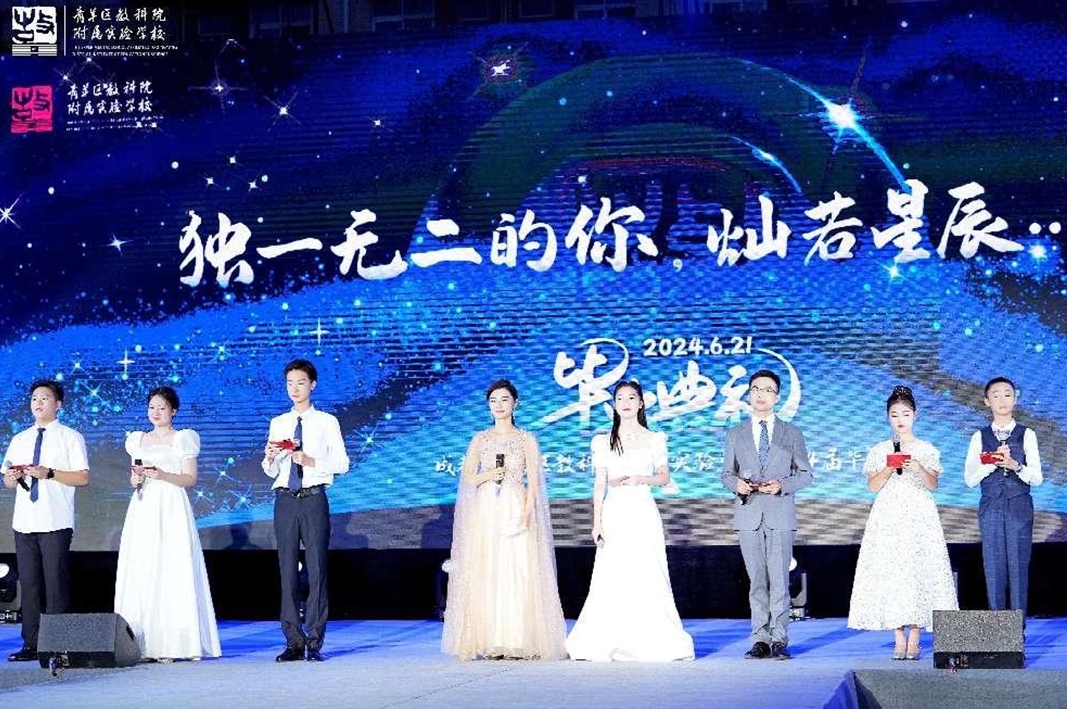晚会以“独一无二的你·灿若星辰”为主题,分为“流光拾梦恰同学少年”“岁月铭恩谁言寸草心”“逐梦启航乘风又破浪”三个篇章,以叙事的形式串联起毕业学子们在学校12年的学习生涯故事。回忆、感恩、追梦、奋进,一曲曲、一幕幕,无不展现着青羊教科附学子大器、灵动、活泼、美好的样子,更彰显着青羊教科附学子乐观、积极、热情、高昂的奋进之志。