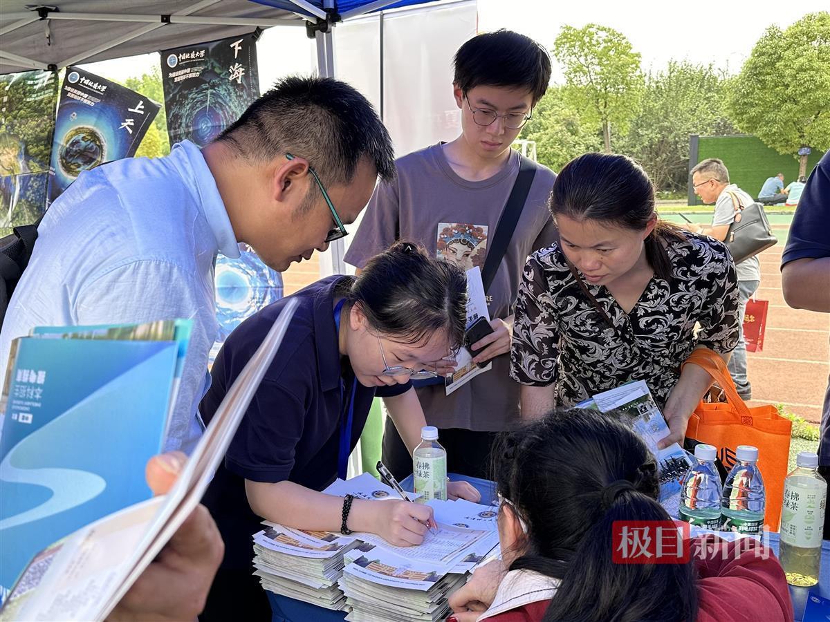 6月26日,在极目新闻高招咨询会上,150余所高校布展,线上同步直播,吸引近百万家长及考生。上午9时,武汉理工大学展位前已经围满了不少考生和家长,该校院士一对一指导的“珠峰班”、知名专家任班主任的4个卓越实验班以及每年有近1700名学生保研等优势,备受大家关注。