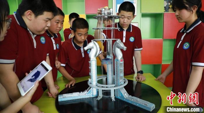 中新网呼和浩特6月28日电题:未来感“牵手”民族风呼和浩特一中学打造3D打印版“太空电梯”