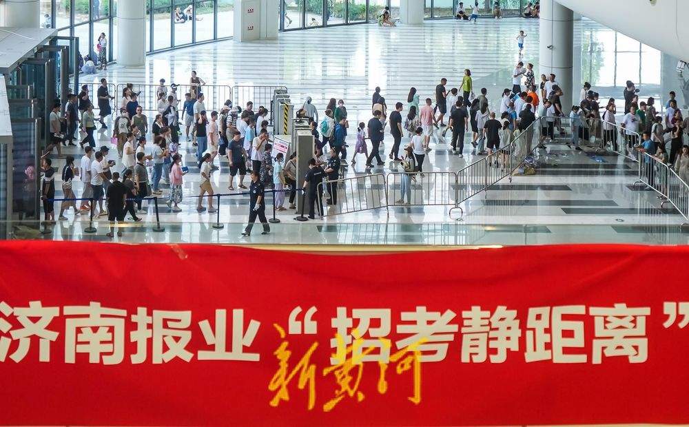 6月30日,在山东国际会展中心,由济南日报报业集团主办的第八届中考志愿填报服务会火热开场。展馆内外人潮涌动,十分火爆,每个学校咨询台和讲座场馆内,都围满了前来咨询的学生和家长,他们在此可第一时间了解掌握高中阶段各个学校的招生信息。