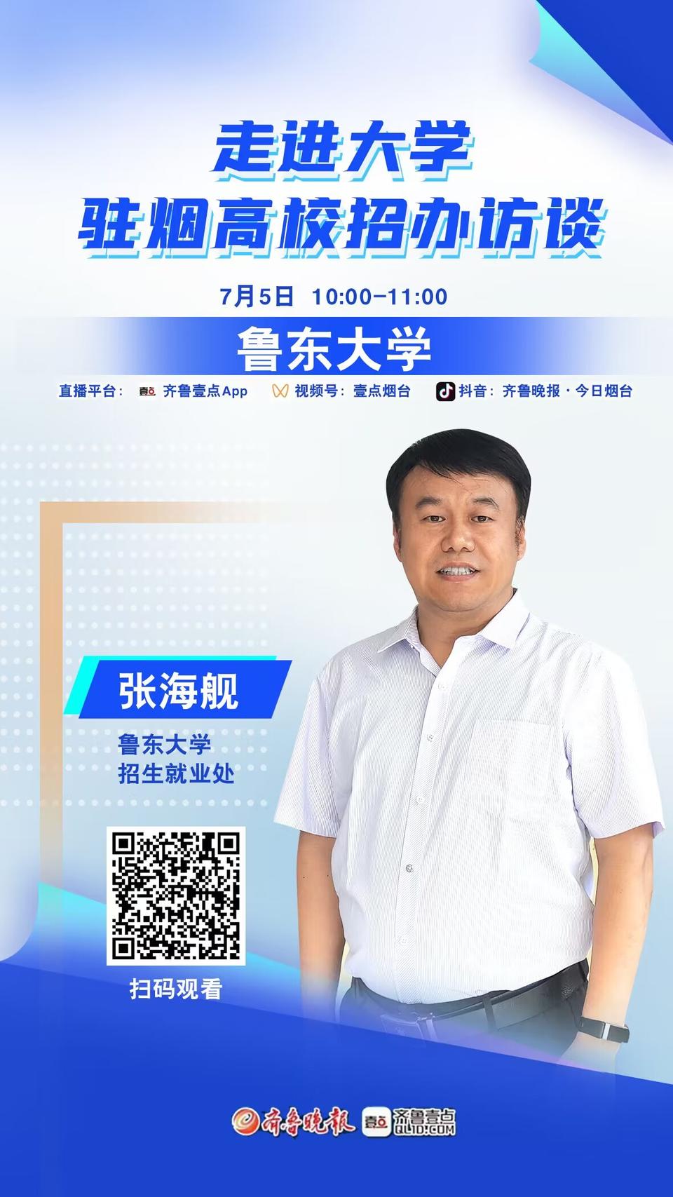 2024年高考招生正在进行中,众多考生和家长关心关注今年各高校的招生政策变化,齐鲁晚报·齐鲁壹点烟台融媒中心特别策划了《走进大学|驻烟高校招办访谈》栏目。7月5日上午,栏目邀请到鲁东大学招生就业处张海舰老师做客直播间。