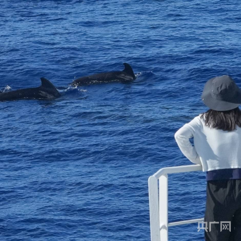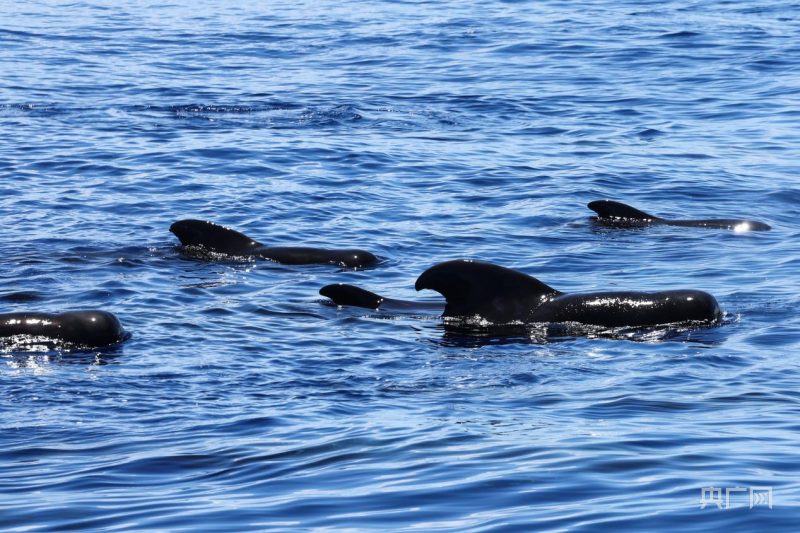 短肢领航鲸在浮窥(央广网发张丽芸摄)