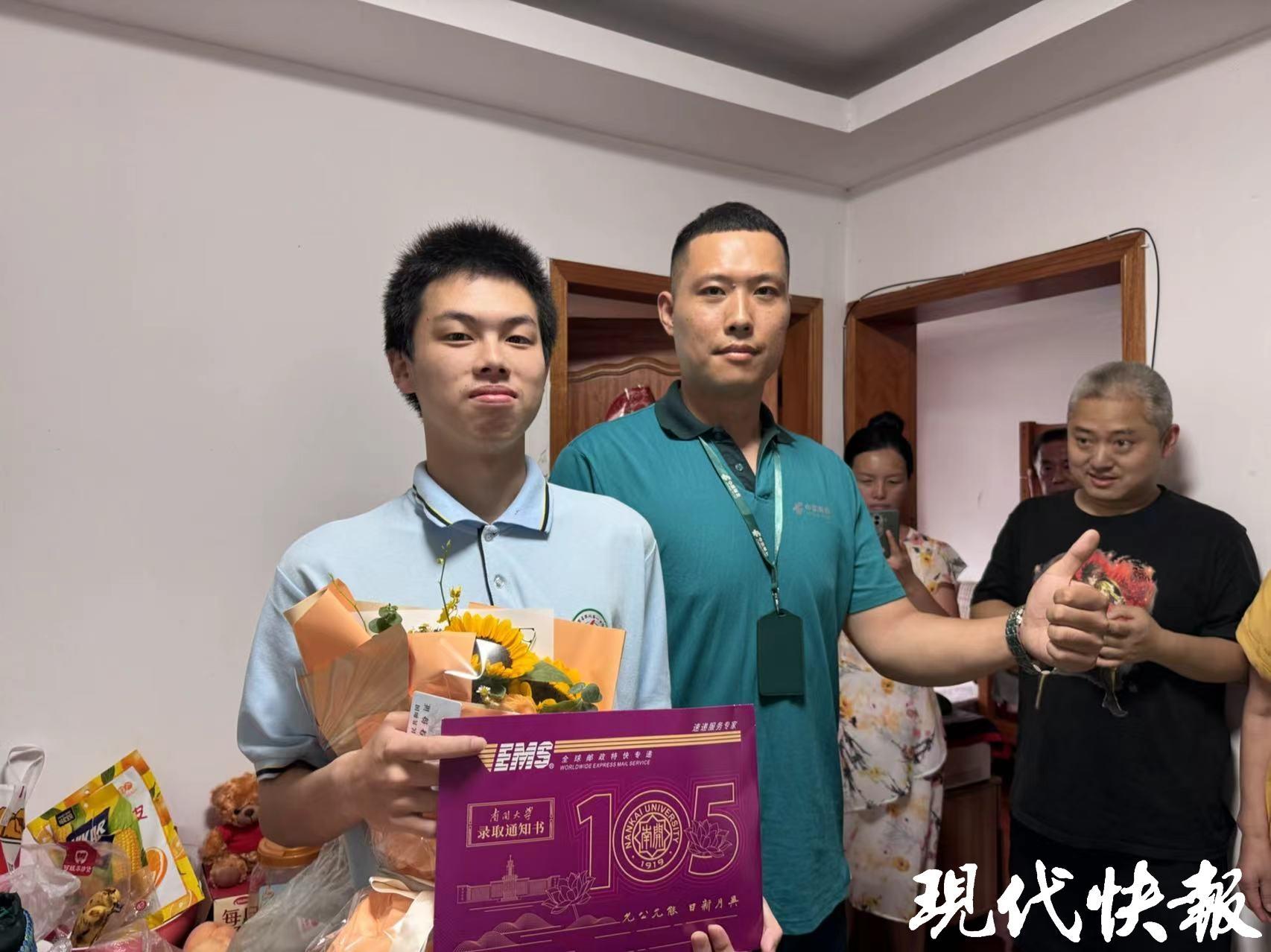现代快报讯(通讯员张菁记者高达)“陈翔宇同学,这是你的南开大学录取通知书,祝贺你!”7月11日下午两点半,2024年苏州首封高考录取通知书成功投递,苏州邮政投递员向家住姑苏区的陈翔宇同学送上了龙年邮票和祝福鲜花。
