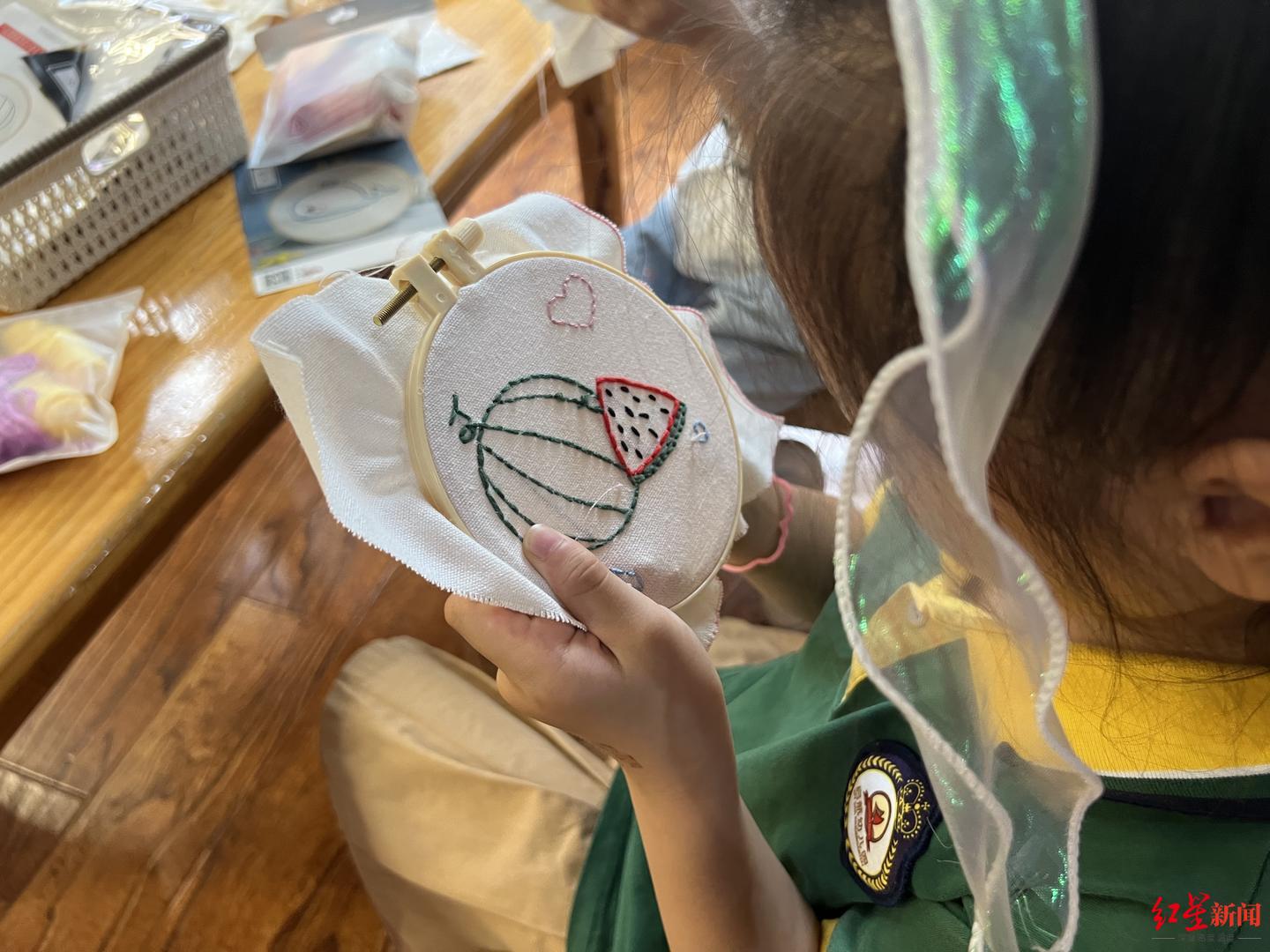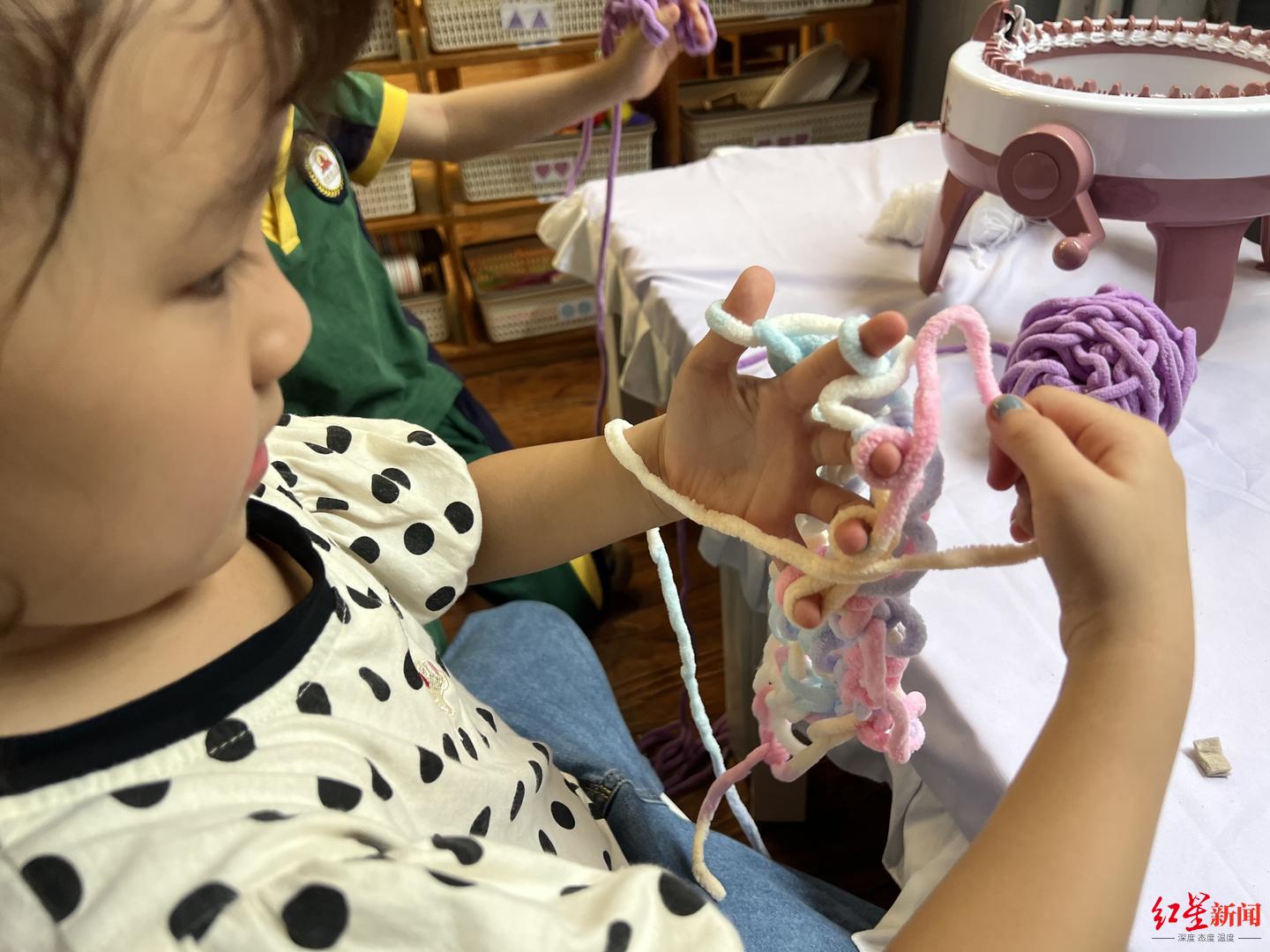 “我们从开园初就为孩子们设置了劳动教育课程,最初是简单的叠被子、叠衣服,随后逐渐增加了种植养殖、食物烹饪等类别。”王新华表示,目前园内有大、中、小班共12个班级,每个班每周至少开设一次劳动教育课程,“其中梭织、缝纫、刺绣等作为游戏活动每天开展。”
