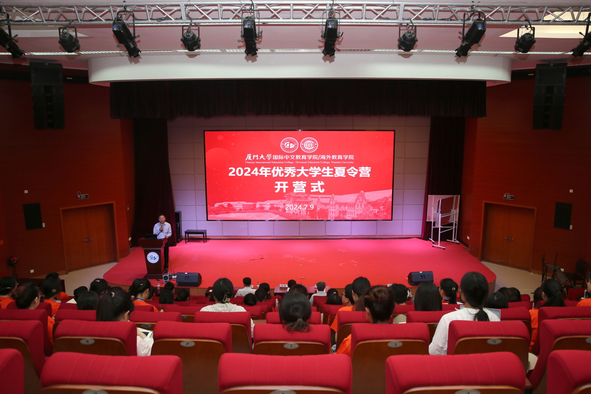 9日上午,国际中文教育学院/海外教育学院2024年优秀大学生夏令营开营仪式在翔安校区坤銮楼B102报告厅举行。学院党委书记范丽等领导班子成员、辅导员、研究生秘书等参加开营仪式。