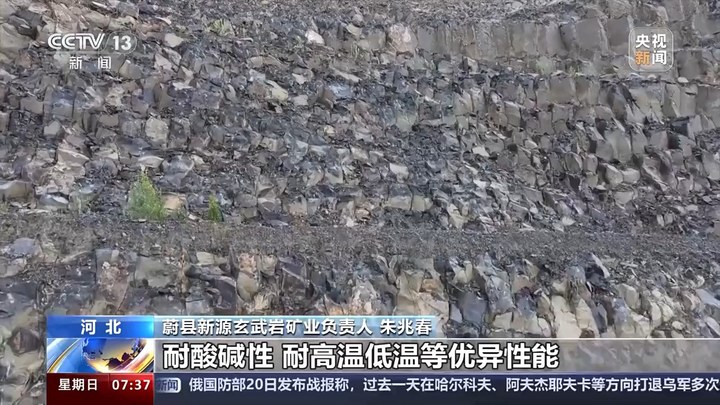 蔚县新源玄武岩矿业负责人 朱兆春:玄武岩具有韧度高、耐腐蚀性、耐酸碱性、耐高温低温等优异性能。