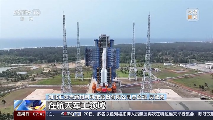 湖北汇尔杰新材料科技股份有限公司总经理 吴敏勇:在新能源汽车领域,可以用作刹车片,可以用做电池模组的防火布;在航天军工领域,我们用作航天发射场拦截网。