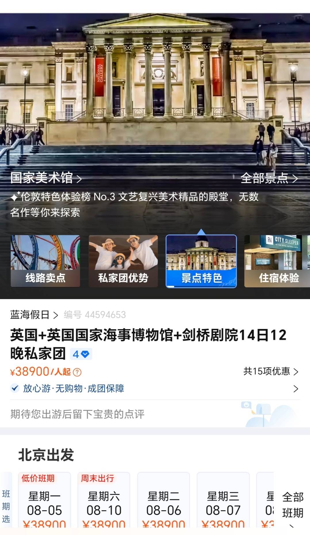 前述产品的价格分别为“美国方向一人48300元”“英国方向一人42800元”。