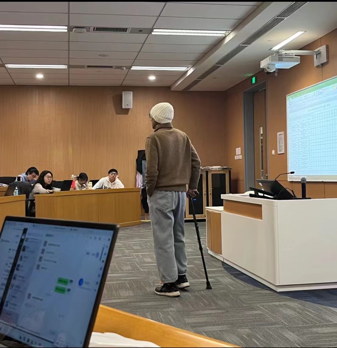 生病前,朱锐在人民大学的课堂上。受访者供图