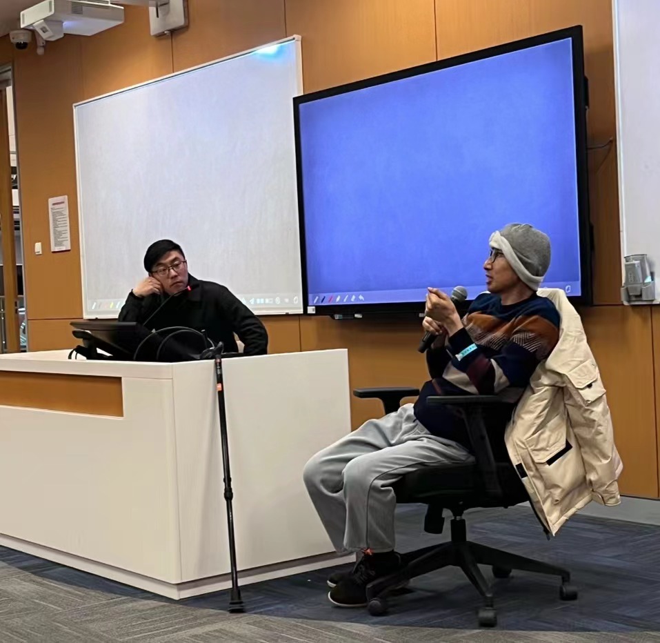 在今年春季课堂上,朱锐与刘畅对谈。受访者供图