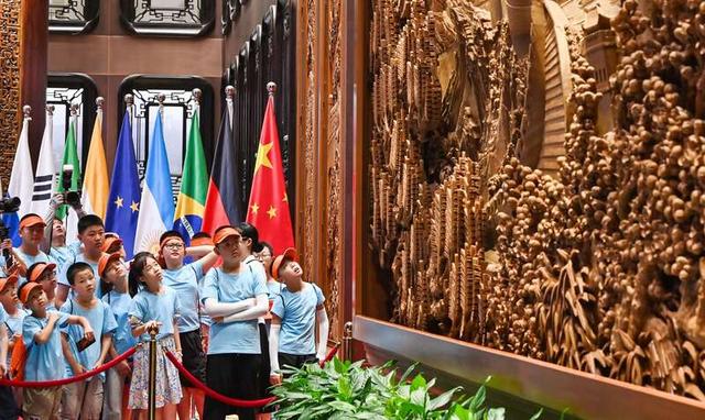 杭州阿克苏两地青少年代表参观杭州国际博览中心。王远超/摄