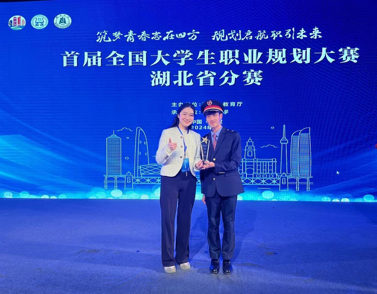 临近比赛的日子,秦吉一上台演练就很紧张,郑莎莎宽慰他,让他保持平常心,“得奖很重要,但是看着你成长,我更开心。”当时,秦吉眼眶湿润,心中的紧张瞬间消散。比赛当天他顺利发挥,斩获湖北省赛就业赛道金奖。