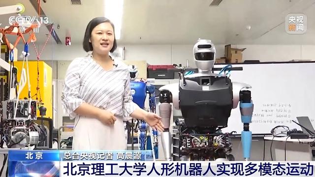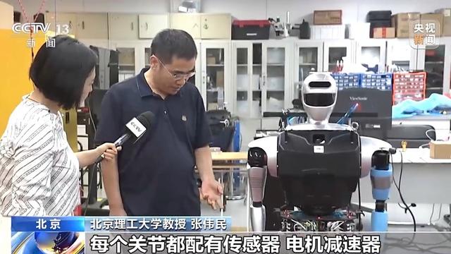 北京理工大学教授 张伟民:每个关节都配有传感器、电机减速器,还有视觉传感器,有些部位还有力传感器,都是我们自主研发生产的,最大能量去发挥它所有材料的动力,关节里边的电机和它关节整体的集成,使它具有很好的爆发力。