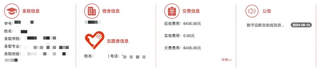 3.登录系统后,可查看录取信息、志愿者信息、交费信息等,如有相关问题可与志愿者取得联系。