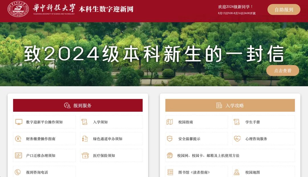 2024级萌新们欢迎“入住”最美森林大学!你们的到来将为翘首以盼的华科大注入新的活力!