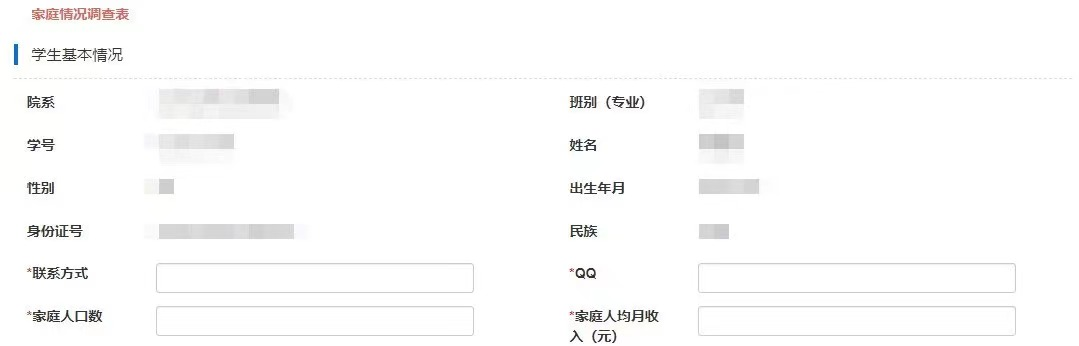 (7)家庭情况调查表:请新生完善各项信息,相关情形若没有则填写“无”。