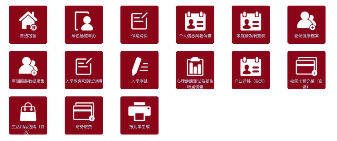 登录系统后即进入自助报到环节。办理财务缴费流程前,须先完成自选宿舍、绿色通道申办、保险购买和生活用品选购4项流程,其他流程办理无先后顺序要求。数字迎新系统中的手续无需一次性办完,新生可以分多次登录系统办理。
