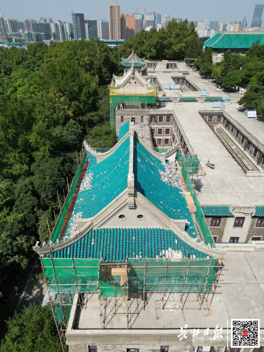 姜修翔告诉记者,2016年武大对老斋舍进行了整体大修。除了更换琉璃瓦,还改善老斋舍内部基础设施,将易腐蚀的木质门窗改为仿古的金属门窗,并安装了中央空调。此次时隔8年后的再次修缮,只是更换阁楼的屋面琉璃瓦。