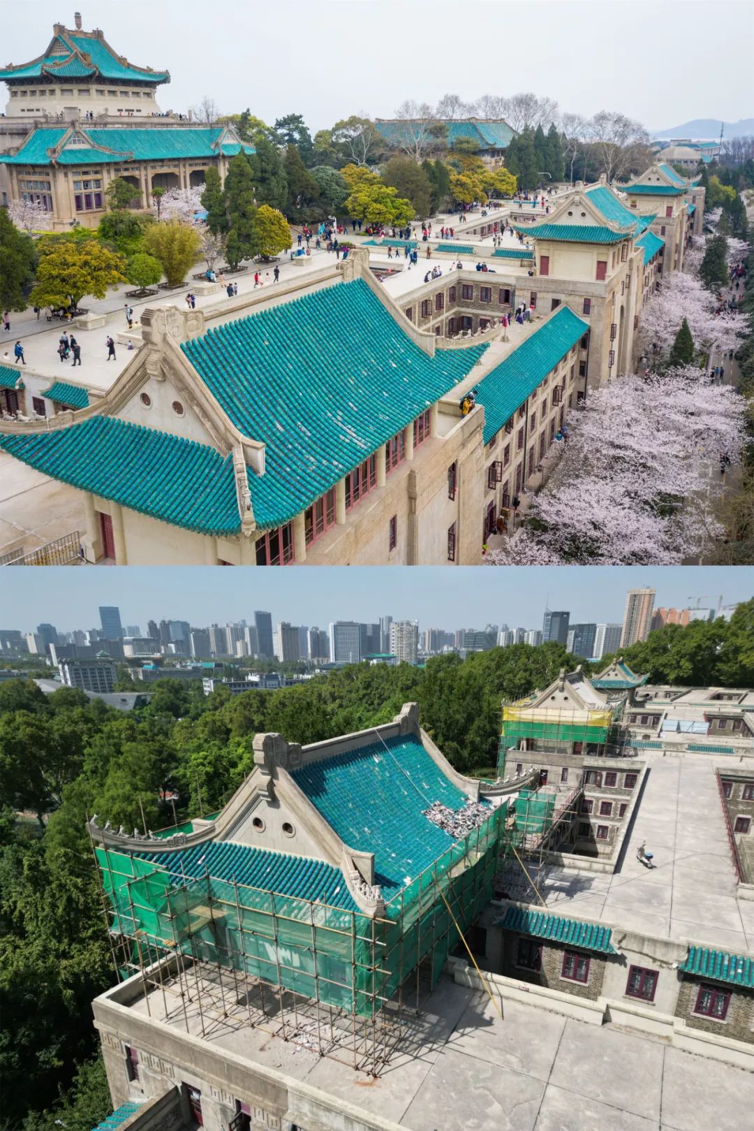 长江日报记者了解到,这是时隔8年武大再一次更换樱顶阁楼的琉璃瓦。