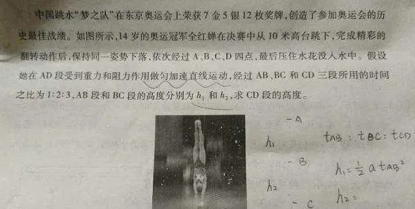 看到全红婵跳水作为题目出现在物理试卷上,不少网友表示,“想知道全红婵遇到这道题,会想什么”“原来全红婵做的是匀加速直线运动啊,涨知识了”。