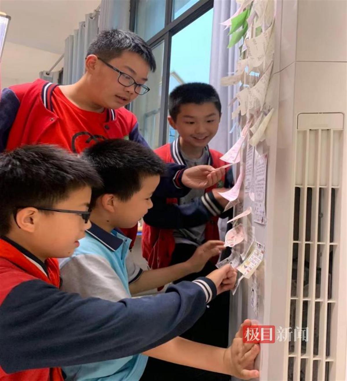“废纸回收站”改掉了学生随手扔垃圾的习惯,养成了节俭的品质;“沟通地带”就设在班级的空调正面,贴着孩子们对同学对老师想说又不敢说、不好意思说的话。