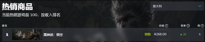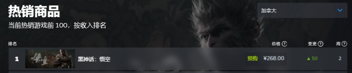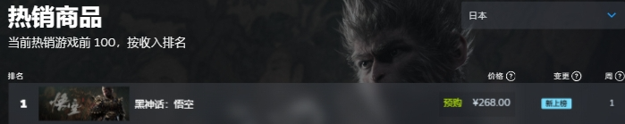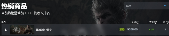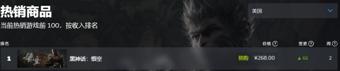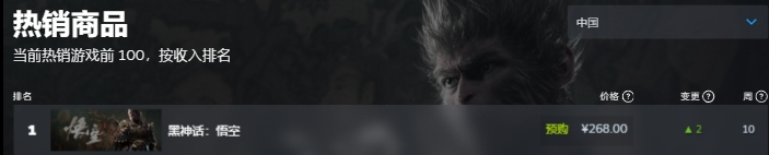 《黑神话:悟空》的故事背景源于经典名著《西游记》,玩家将扮演一位“天命人”,为了探寻昔日传说的真相,踏上一条充满危险与惊奇的西游之路。《黑神话:悟空》被称为国产游戏的“3A大作”,被视为目前国内游戏制作的较高水平,自从预告片披露后就惊艳了外界。游戏平台Steam数据显示,这次不仅是在中国区,在目前全球热销商品中,《黑神话:悟空》都持续霸榜第一名。