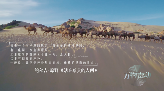 由主持人龚韵熹、钢琴演奏者万捷旎、音乐人赵鹏、旅行达人高旻组成的“声动小队”到内蒙古赤峰,倾听簌簌风声,在潋滟湖光边偶遇飞鸟与鱼,在广袤沙漠里细听沙底脉动,在自然天地间收集万籁之音。骆驼踩沙、马蹄阵阵、树叶飘落、鸿雁鸣啼......通过与自然对话,与万物共鸣,展现出人与自然和谐共生的融合之美。