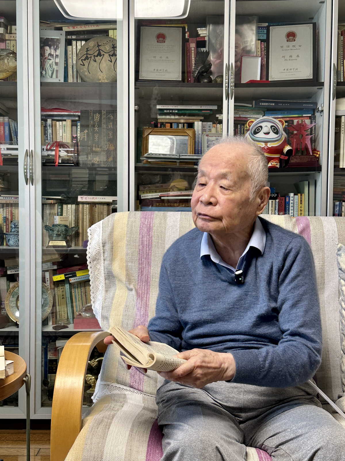 何祚庥在家中接受记者采访