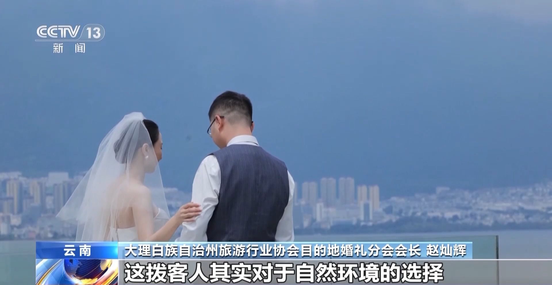 大理白族自治州旅游行业协会目的地婚礼分会会长 赵灿辉:实际上从全球目的地婚礼的角度来看,这拨客人其实对于自然环境的选择是非常挑剔的一拨客人,基本上选择的是最优美的自然环境。