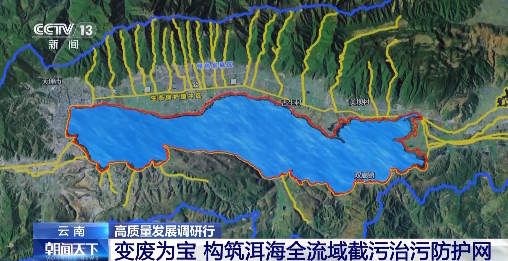 一张蓝图,统一规划,在洱海保护治理及流域转型发展指挥部,记者看到,洱海流域建成5700多公里的污水管网,20座再生水厂,25个有机废弃物收集站点,实现了污水垃圾的全覆盖全收集,为洱海织就了一张巨大的生态防护网。