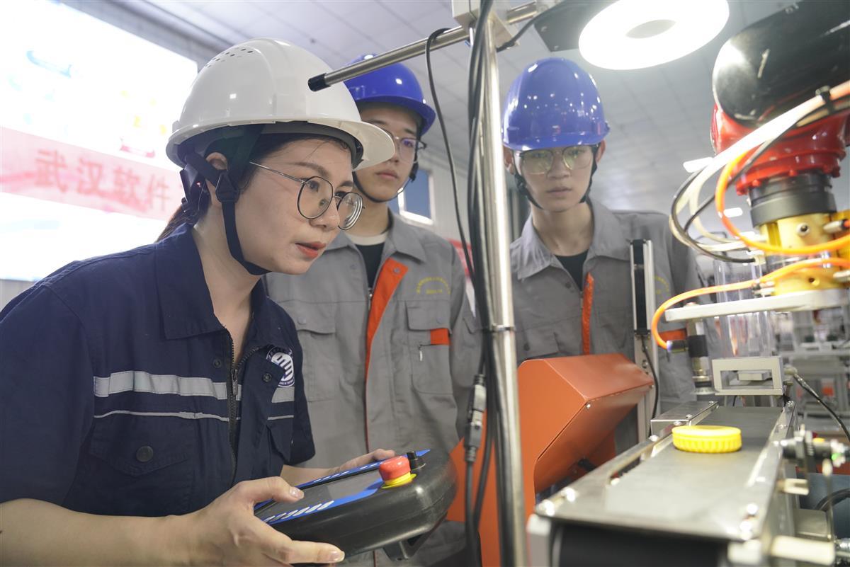 她说自己不算巧手,从武汉理工大学机电工程学院机械电子工程专业硕士毕业到武软任教后,一直努力以勤补拙。她热衷于去企业学习新技能,2014年暑假,她去浙江凯达机床股份有限公司,学成了数控机床操作调整工高级工;2018年上半年,她到武汉华中数控股份有限公司学做智能制造产线调试工;2020年,又去华中数控进修了两个月,拿下了“1+X”工业机器人应用编程职业技能等级;2023年,在西门子工厂自动化工程有限公司锻炼半年,学做数字化工程师……不出外学习时,她得空就去落户在学校的武汉市智能制造公共实训平台练技能,睡在实训室的日子也不少。