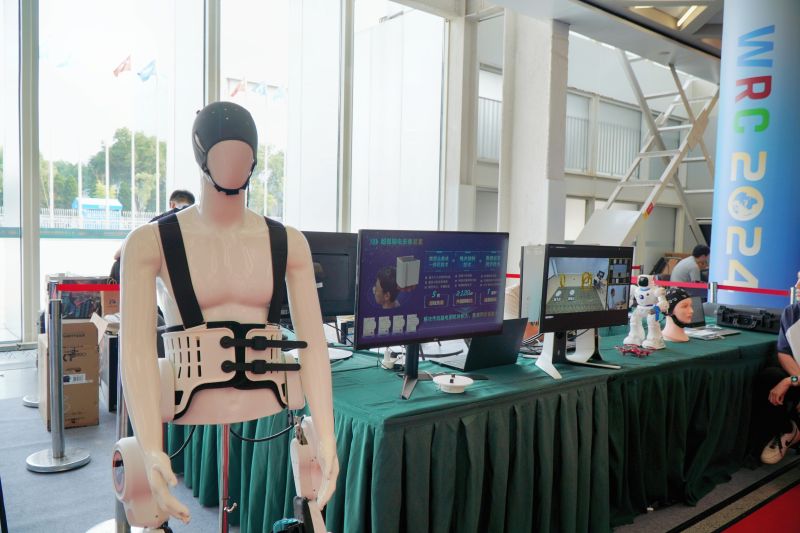 天津大学神经工程团队展示了他们研发的脑控外骨骼机器,主要用于下肢康复治疗。技术人员解释说,通过脑电波提取脑电信号,可驱动外骨骼帮助患者行走。更重要的是,这套设备在患者行走过程中还能不断施加电流刺激肌肉和神经系统,帮助患者修复可逆的受损神经和肌肉。目前技术已进入临床试验阶段。“未来设备正式进入市场后,预计售价为十多万元,医院和患者都可以负担得起。”