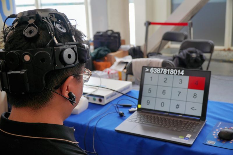 博睿康科技(常州)股份有限公司的工作人员向观众展示了这一创新技术。他们指着显示屏上闪烁的数字解释道:“我们利用了不同数字闪烁频率的差异,通过视觉刺激来激活大脑的不同区域形成脑电波,再将脑电波转化成数据,系统就能准确识别出用户想要选择的数字。”工作人员说,这项技术的应用远不止于打字,未来还将广泛应用于轮椅、无人机、机械臂等设备的控制。“每个数字相当于一个指令,想让设备执行什么动作,只需将对应的数字转化为相应的指令即可。”