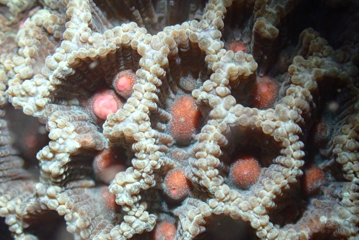 “粉红色、小气泡一般的卵子从成千上万个珊瑚杯口同时升起,顺着水流漂浮,好像满天繁星。那是造化最为神奇的时刻之一。”她这样描述着珊瑚产卵的过程。