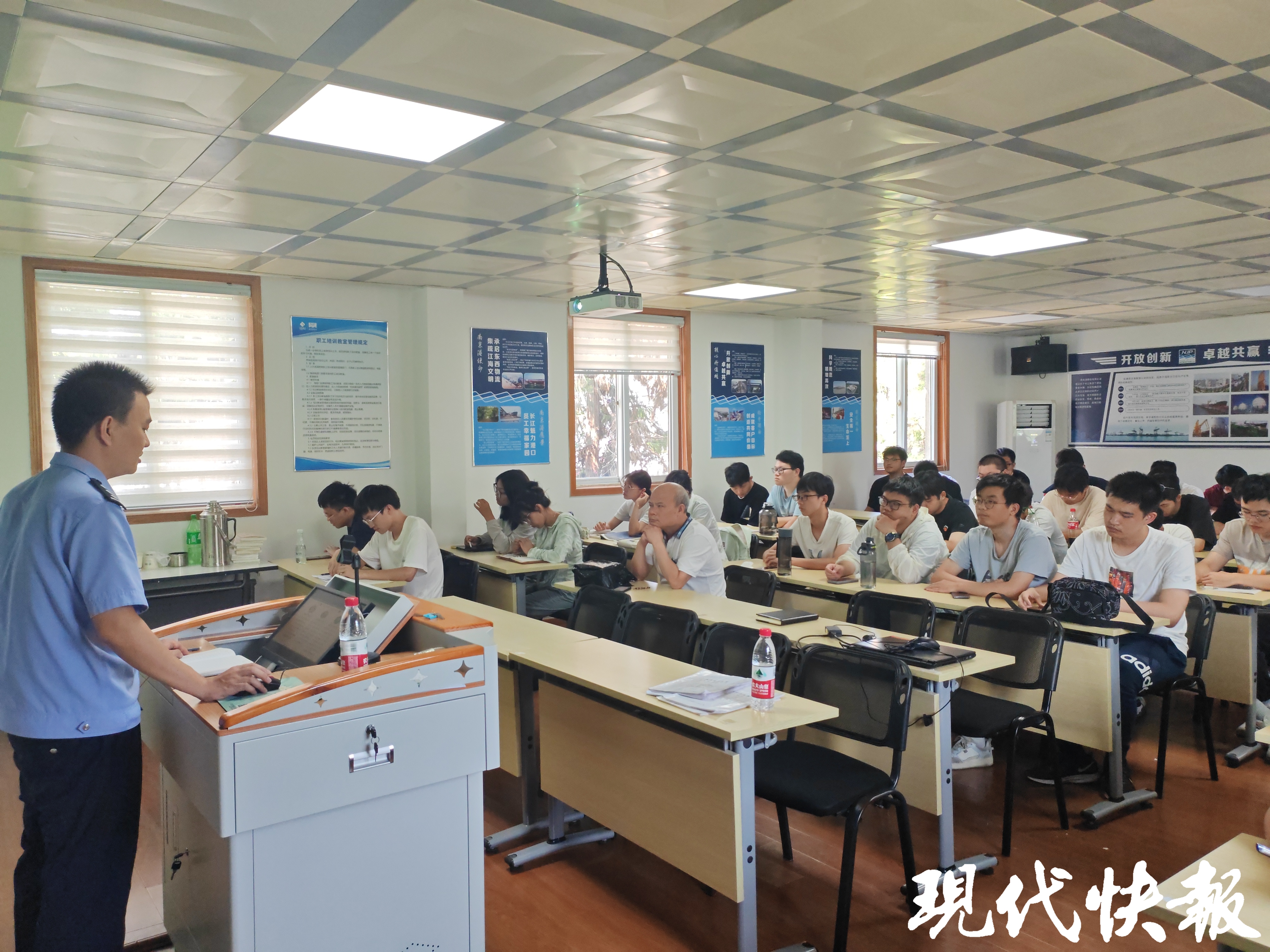 现代快报讯(通讯员束永东记者顾元森)近日,40余名大学生来到长江仪征段一港口企业,该企业是某高校校外实践基地和大学生就业基地。在暑期实践即将结束之际,长航公安局南京分局仪征派出所民警向大学生们开展了一场防溺水、反电诈安全教育和普法宣传活动。