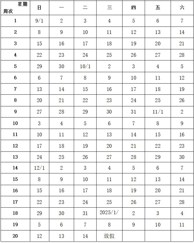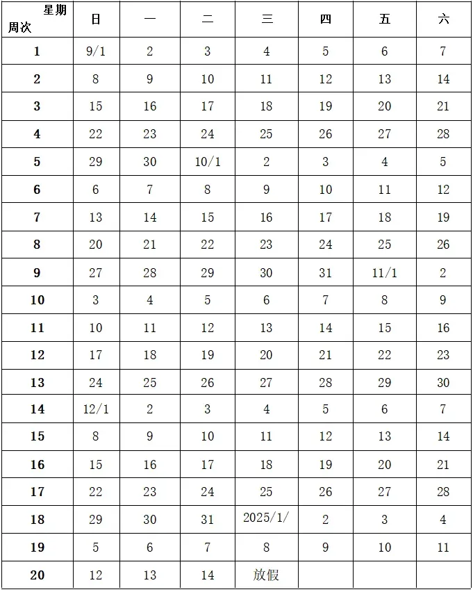 一、第一学期:全市义务教育学校统一于2024年9月2日开学,2025年1月14日结束。寒假从2025年1月15日开始,3月2日结束。