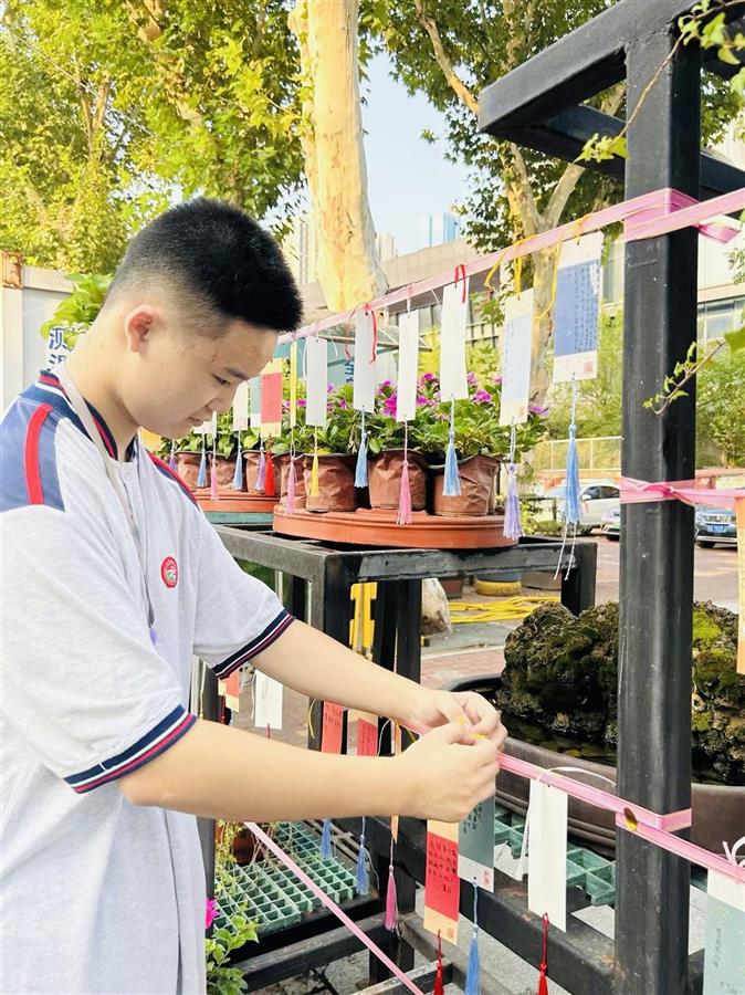 学生一进校园就看到校园繁花盛开,奥运健儿宣传海报映入眼帘,学生陈津晶不由自主地喊道:“哇,我最喜欢的孙颖莎!”晨会上,901班作为代表站在主席台与全校学生一起唱出“开最灿烂的花,做最耀眼的火”,一张张稚嫩的面庞,唱出了最有力的青春梦想。