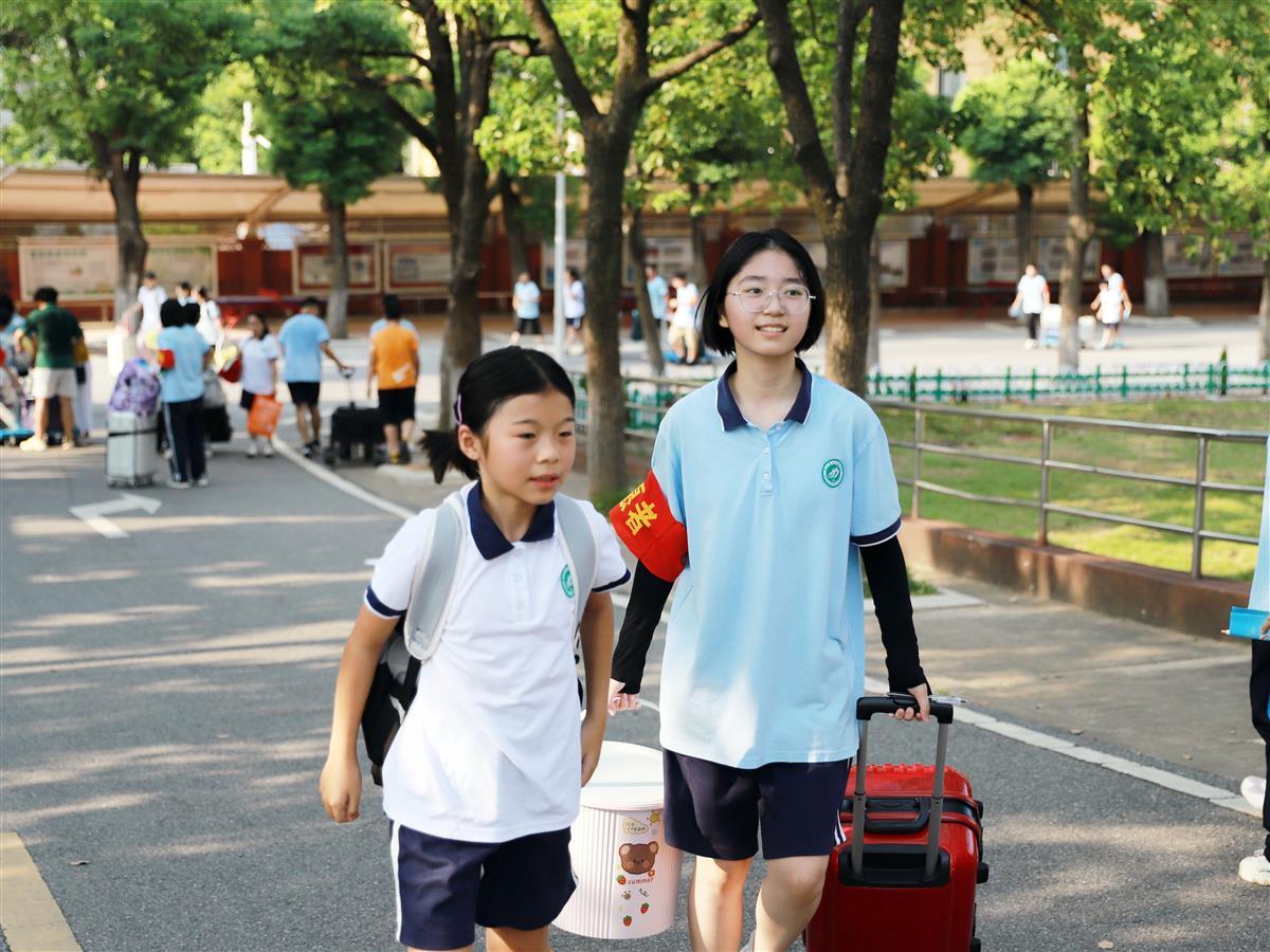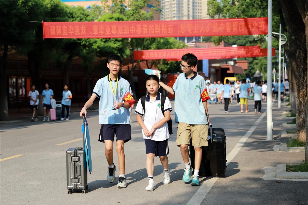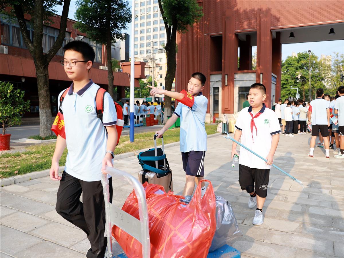 “跟我来,我带你去宿舍!”“行李给我吧,我给你拿。”“我在914班,就在五楼,以后有啥事都可以找我!”9月1日上午,位于武汉市的湖北华宜寄宿学校迎来了初一新同学,按学校传统,全体九年级学长学姐出门相迎,一对一帮助,陪伴式入学,以独具特色的“自砺教育”第一课,帮助新同学们快速适应寄宿制学习生活。