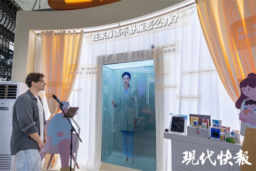在“未来健康”展区,观众可以体验支付宝AI健康管家提供的AI识药盒、读报告、测毛发等系列家庭健康服务。在模拟的医院环境中,还可以看到由浙江卫健委与支付宝联合推出的全国首个数字健康人“安诊儿”,利用AI大模型、数字人等技术,帮助医疗机构为患者提供覆盖就医前、中、后的“AI陪伴就诊”服务。这一数字人的推出,也特别为老年人的就医提供了便利。