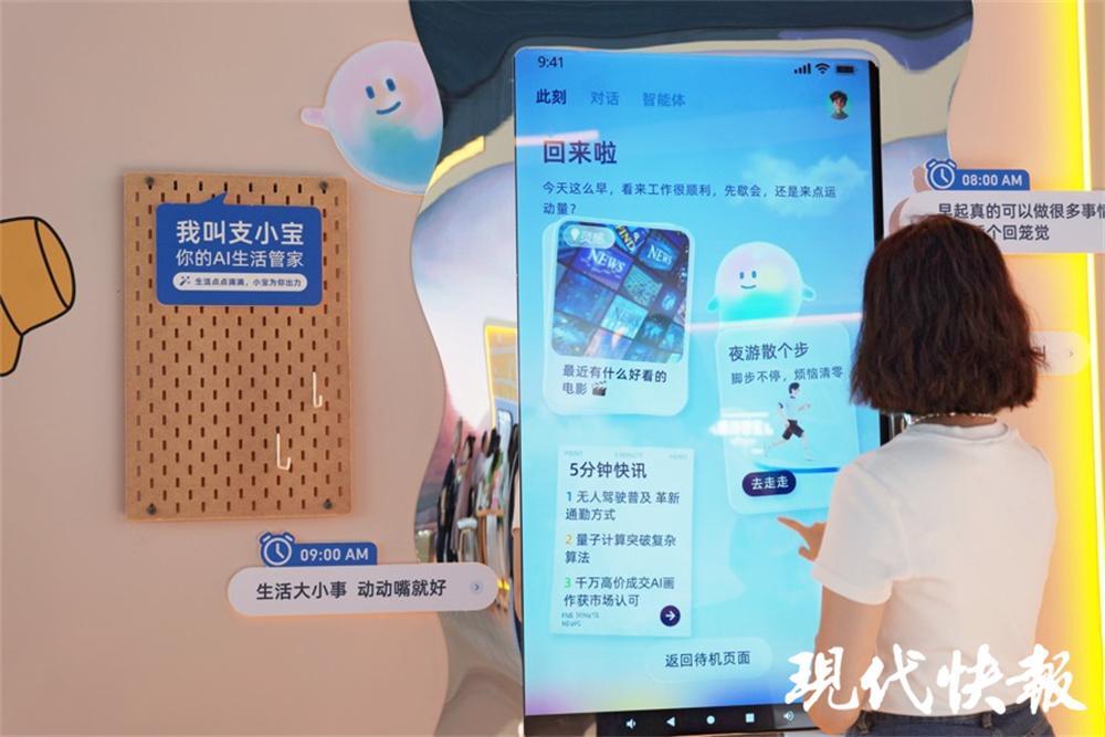 在“未来助手”展区,观众可以点点支付宝的AI生活管家“支小宝”,通过对话让它帮你订票、点餐、快速唤出公交码、搜寻附近吃喝玩乐的好地方等,体验“说句话就能办事”的极致服务;还能让它根据不同的时间和地点,智能推送专属的贴心服务——每天清晨解读新闻、提醒天气、一键打车,下午让AI帮忙点杯咖啡、推荐下班好吃的火锅,晚上制定适合CityWalk的夜游路线等。
