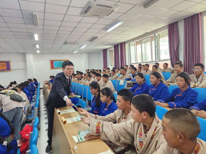 早在一个月前,西城区人民检察院检察官施亮来到囊谦县人民检察院,和未检负责人索昂巴措商讨开学第一课的内容与形式,共同研究分析近五年囊谦县未检案件的特点,并主动询问学校需求,围绕高原地区社会发展现状、少数民族学生居多等特点有针对性的形成课件与讲稿。“校园欺凌要掌握三不原则”、“野生保护动物碰不得”、“有困难记得拨打12309”…两位检察官用藏、汉双语为同学们讲述应知应会的法律知识,同学们也积极互动,课堂反响热烈。