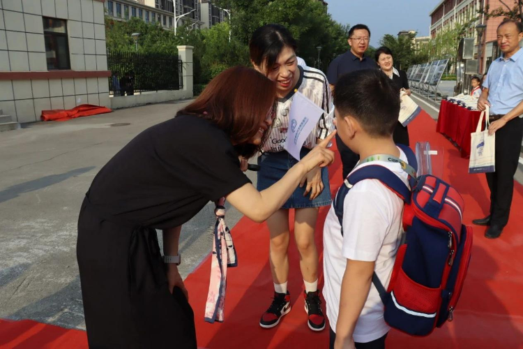 学校还安排了文明引导员,为新入学的一年级的小萌新指引方向。烈日炎炎,热浪袭来,抵挡不住孩子们入学的激动。按引导员的指示,一年级小萌新选了自己喜欢的小花贴,并在签名墙上留下了意义非凡的一笔。