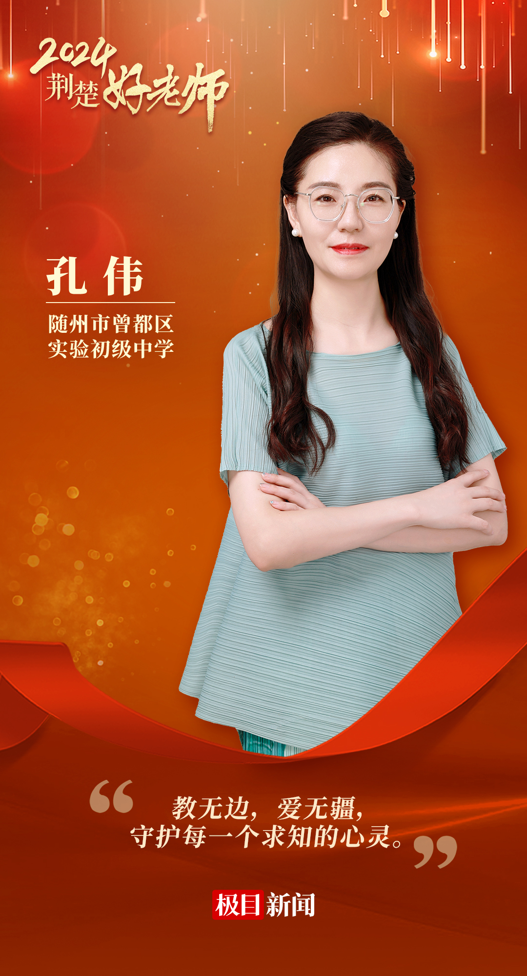 46岁的孔伟老师,是湖北随州市曾都区实验初级中学物理高级教师,连续带了十年毕业班。在学生心里,她是“十里春风”。她自制教具、妙手施教,以实验为钥,启物理之门,让充满公式定理的物理世界变得妙趣横生,照亮学子心灵。在同事眼中,她是“灿烂光芒”。身为名师工作室主持人,在集体备课、教科研中她总能融入新的理念,设计出让人耳目一新的教学思路。二十七载深耕教坛,她引领同事共成长,擦亮省级示范教联体品牌。在她的带领下,涌现出了越来越多诲人不倦的师者。