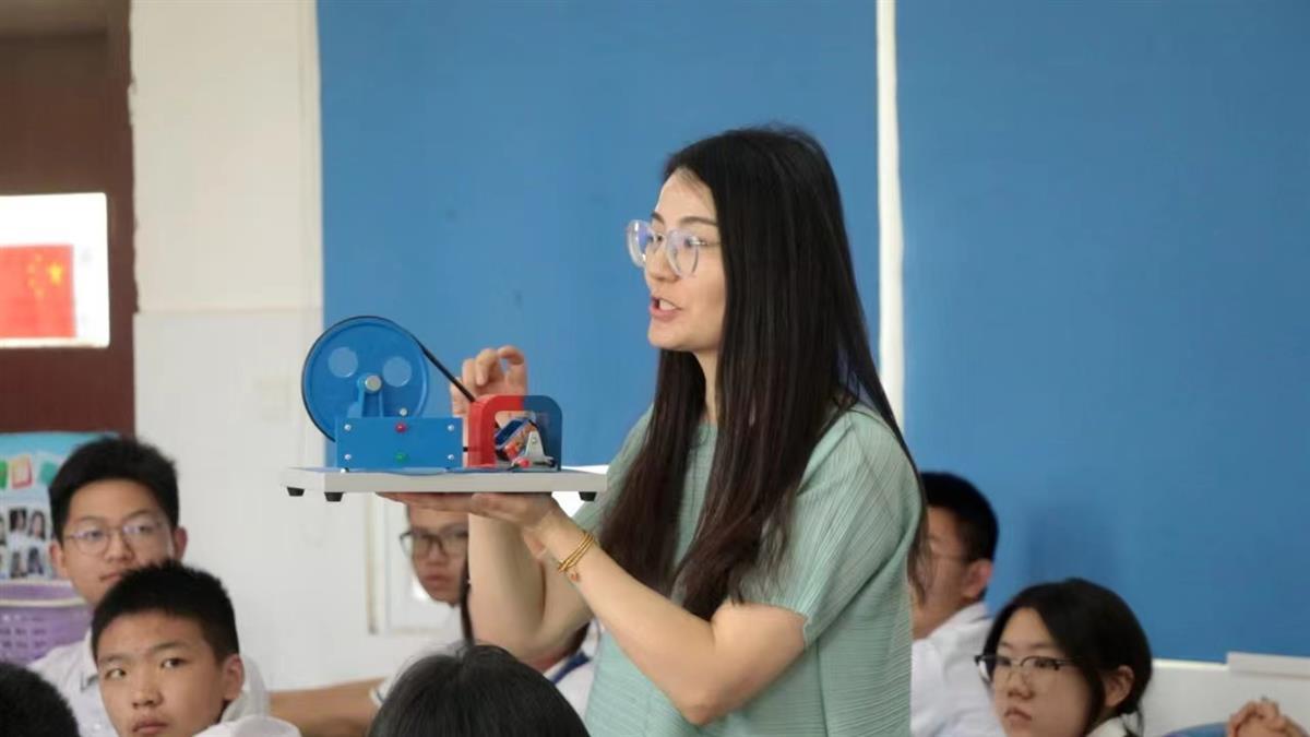 连续十年,孔伟担任两个毕业班的物理教学。她经常听学生谈到物理好难懂好枯燥,于是便想通过实验的形式激发学生的学习兴趣,书本中的物理知识被她设计成一个个妙趣横生的小实验。“同学们看,把一杯水慢慢地倒过来、旋转,水就会泼洒出来;我加速旋转水杯,水就不会流出,这是什么原理?”“放进冰箱里的饮料拿出来为什么会有水?宽大的木板为什么会浮在水面上?为什么通过滑轮能轻易拉起重物……”在充满了公式定理的物理世界里,孔伟的每一堂课都是一场精心编排的实验,她把物理知识通过生动有趣的实验呈现给学生,这些知识让毕业很多年的学生记忆犹新,仿佛时时能触摸到那广袤无垠的科学奥秘。